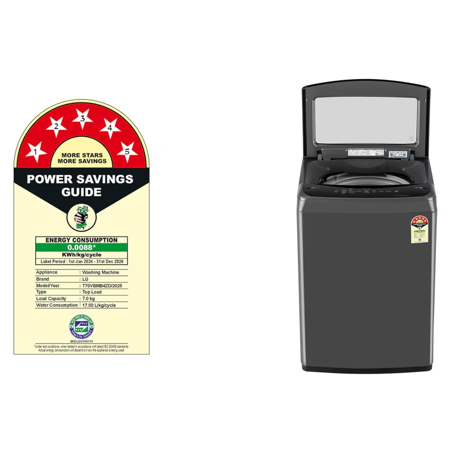 LG 7 kg 5 Star, Smart Inverter, TurboDrum, Smart Diagnosis, Fully Automatic Top Load Washing Machine (T70VBMB4ZD, Middle Black)